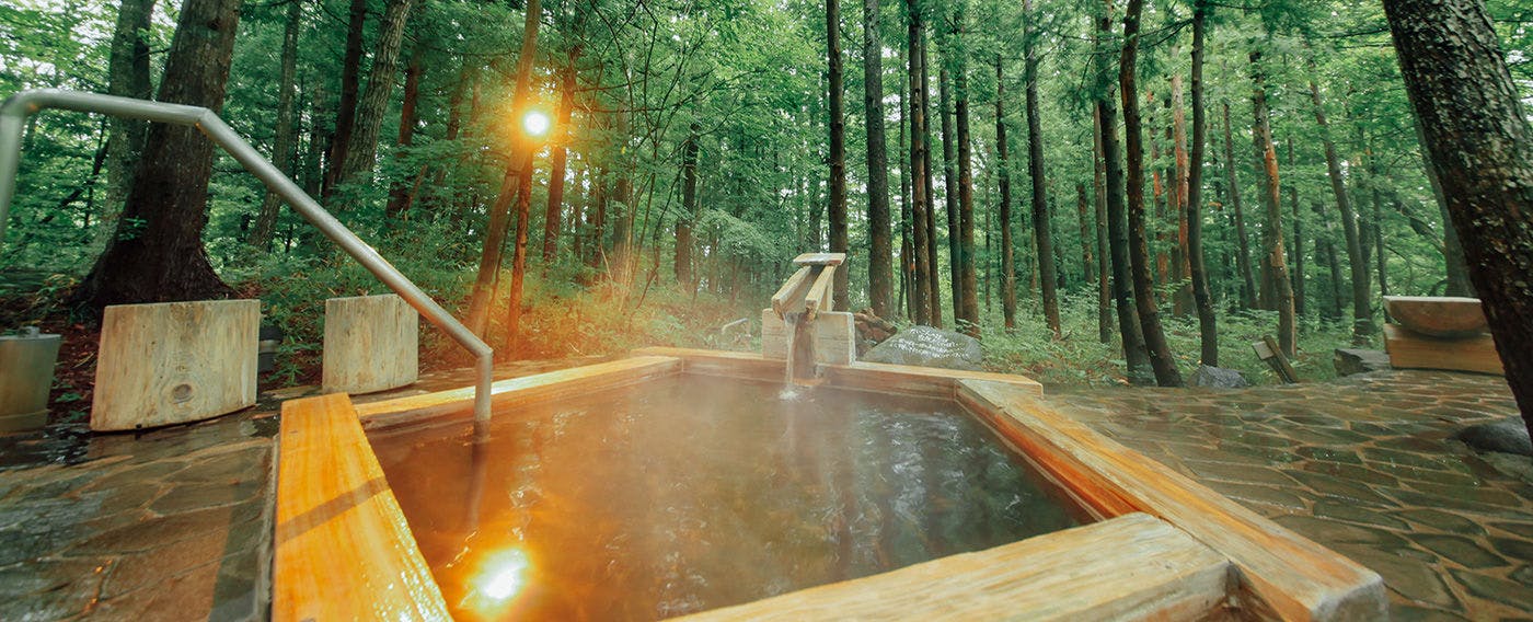 豊かな自然と一体になれる、自家源泉かけ流しの湯。